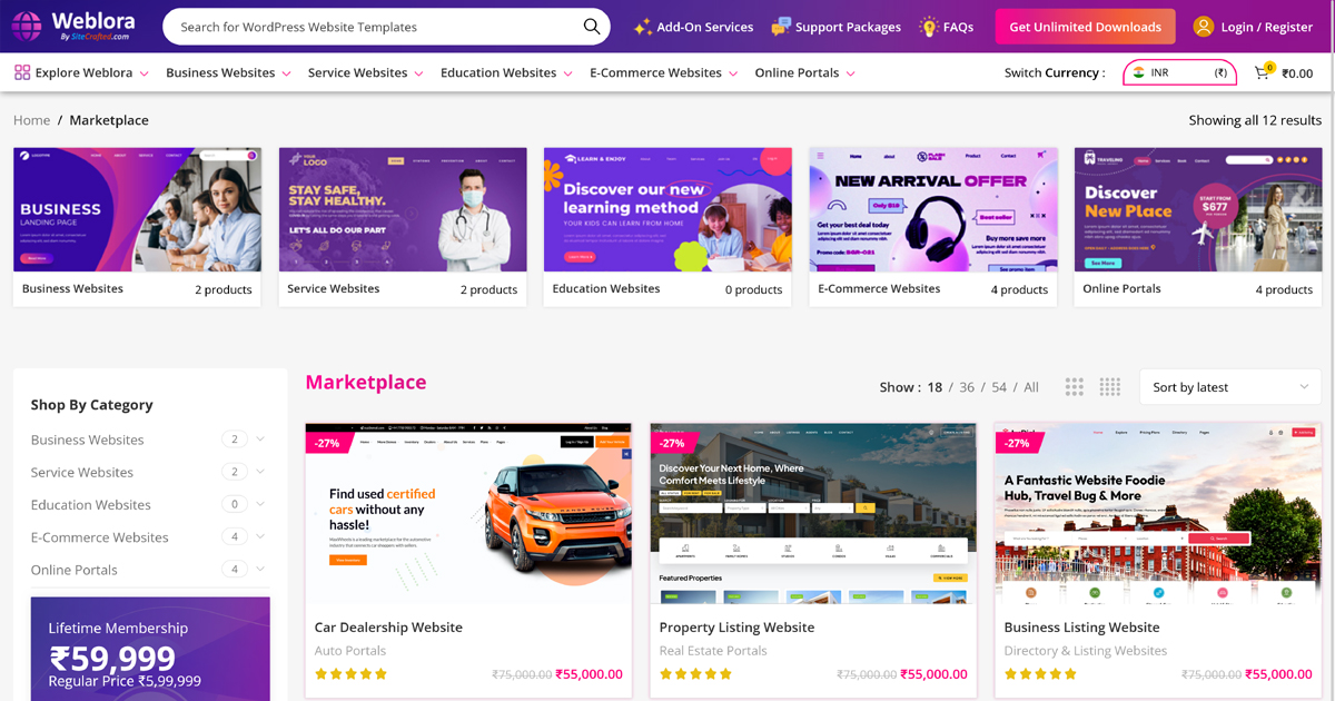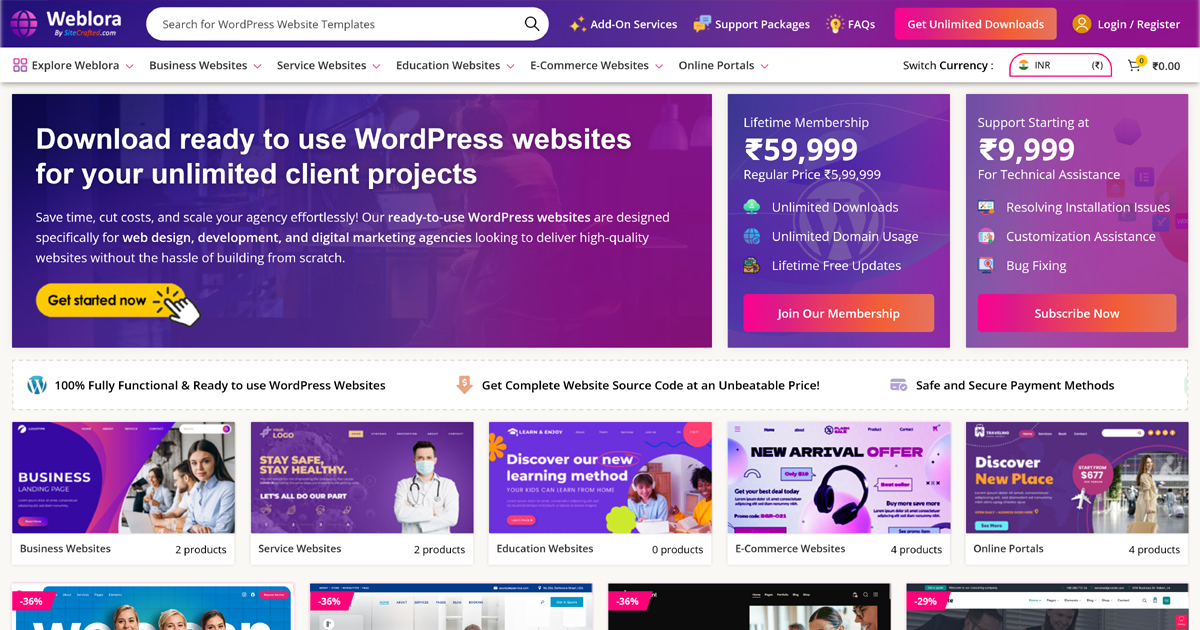 Weblora, developed by SiteCrafted Web Solutions, is a powerful, modern marketplace platform for selling readymade WordPress websites, Elementor templates, landing pages, digital assets, and membership-based downloadable products.